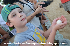 A gente ia na sexta, mas os primos estavam doentes. Sábado tinha casamento. O pessoal queria marcar pra segunda, mas o João não estaria mais aqui e a mãmi tinha prometido PRA NÓS 3 que nos levaria para vermos as tartarugas. E, vocês já sabem: aqui em casa, “combinado é combinado”!!!